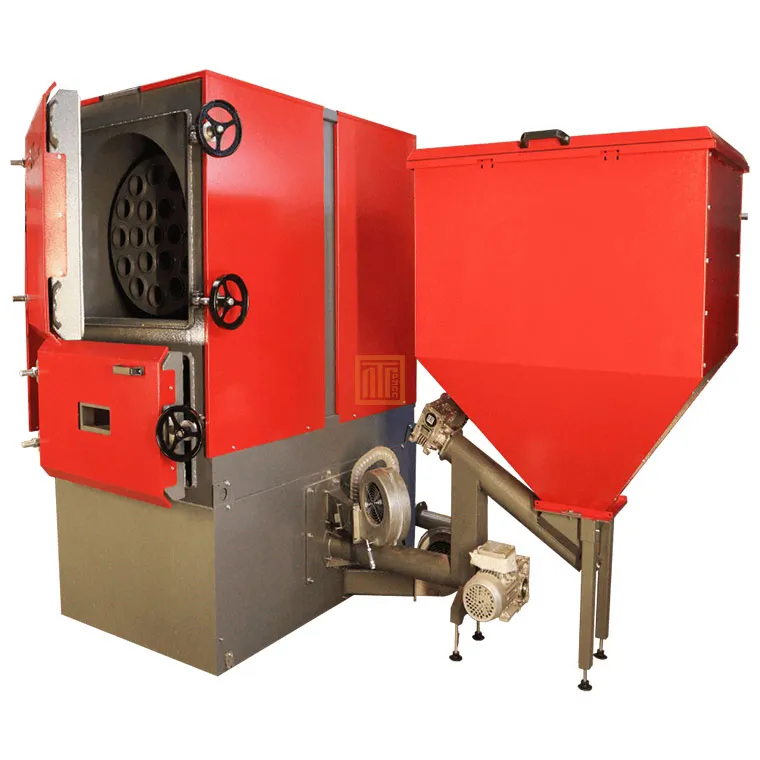 Камера сгорания этих котлов относительно небольшая, так как основной теплосъём происходит в хорошо развитой многоходовой конвективной части котла (до 70 %). В результате такой конструкции пеллетного котла температура уходящих газов составляет всего 100—200 °C. Котёл оборудован специальной гранульной горелкой объёмного типа, которая обеспечивает более высокий КПД работы котла при сгорании гранул, чем у других категорий твердотопливных котлов, и сравнима по эффективности с котлами на природном газе.