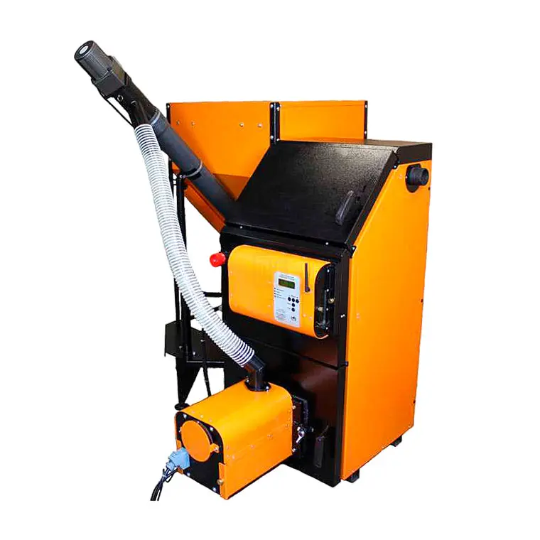 Пеллетный котёл оснащён горелкой типа ВС, имеющей систему механической автоочистки и внутренний шнек. А так же возможности дистанционного контроля и управления, посредством GSM и WI-FI модулей в её блоке управления.